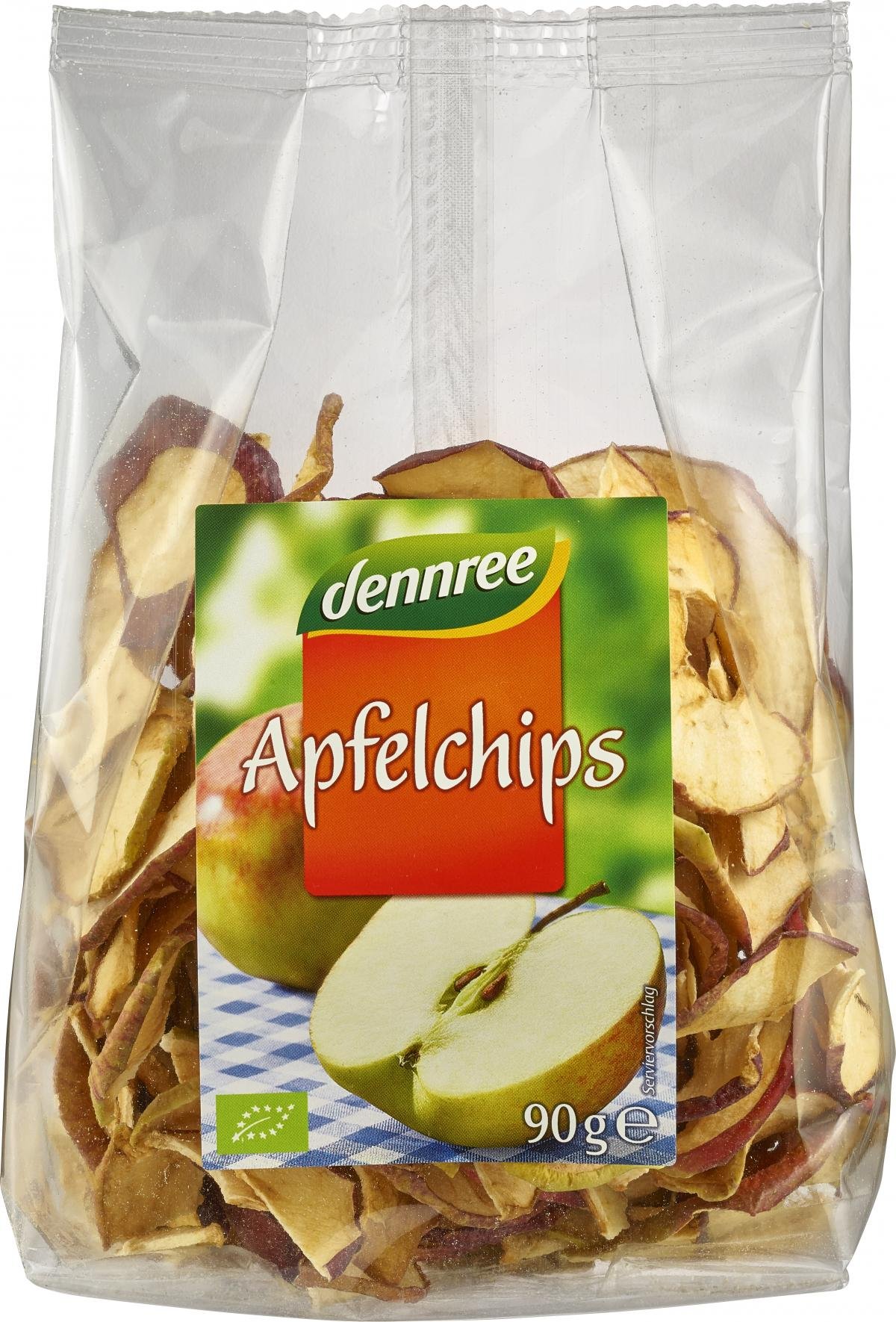 dennree Apfelchips, ungeschält & getrocknet, 90 gr