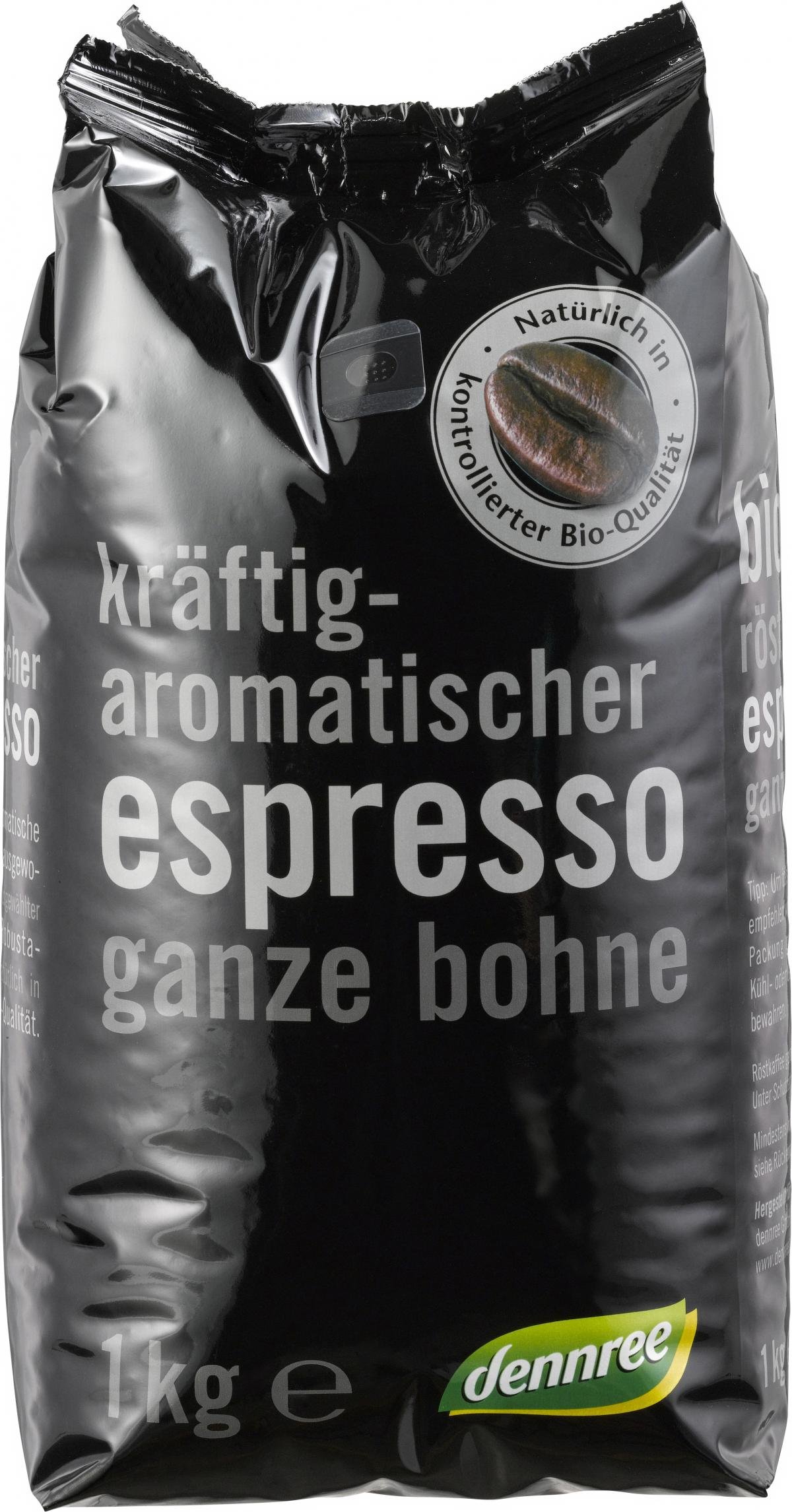 dennree Espresso, ganze Bohne, 1 kg Packung