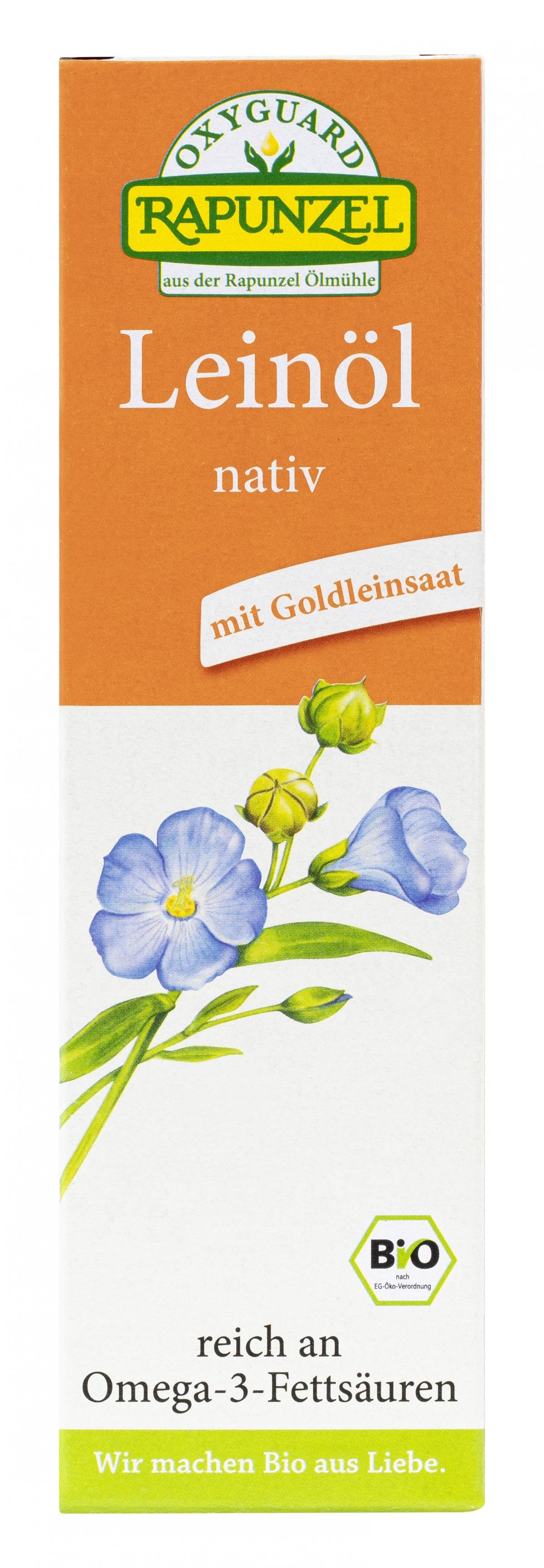 Mit Sorgfalt in der Rapunzel Ölmühle im Allgäu gepresst. Das Aroma ist fein nussig mit einer leichten, typischen Bitternote. Das Leinöl wird im speziellen OXYGUARD®-Verfahren hergestellt. Durch das besonders schonende Verfahren im Haus Rapunzel bleibt der Reichtum an wertvollen Inhaltsstoffen enthalten. Rapunzel OXYGUARD® Leinöl nativ ist eine hervorragende Quelle für mehrfach ungesättigte Fettsäuren, die für den Menschen lebensnotwendig sind. Die essentielle 3-fach ungesättigte Alpha-Linolensäure ist in hoher Konzentration enthalten.