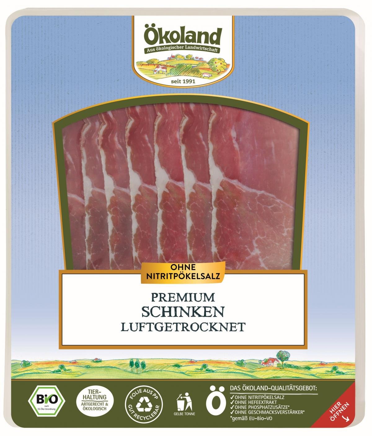 Ökoland Premium Schinken luftgetr, 80 gr Packung