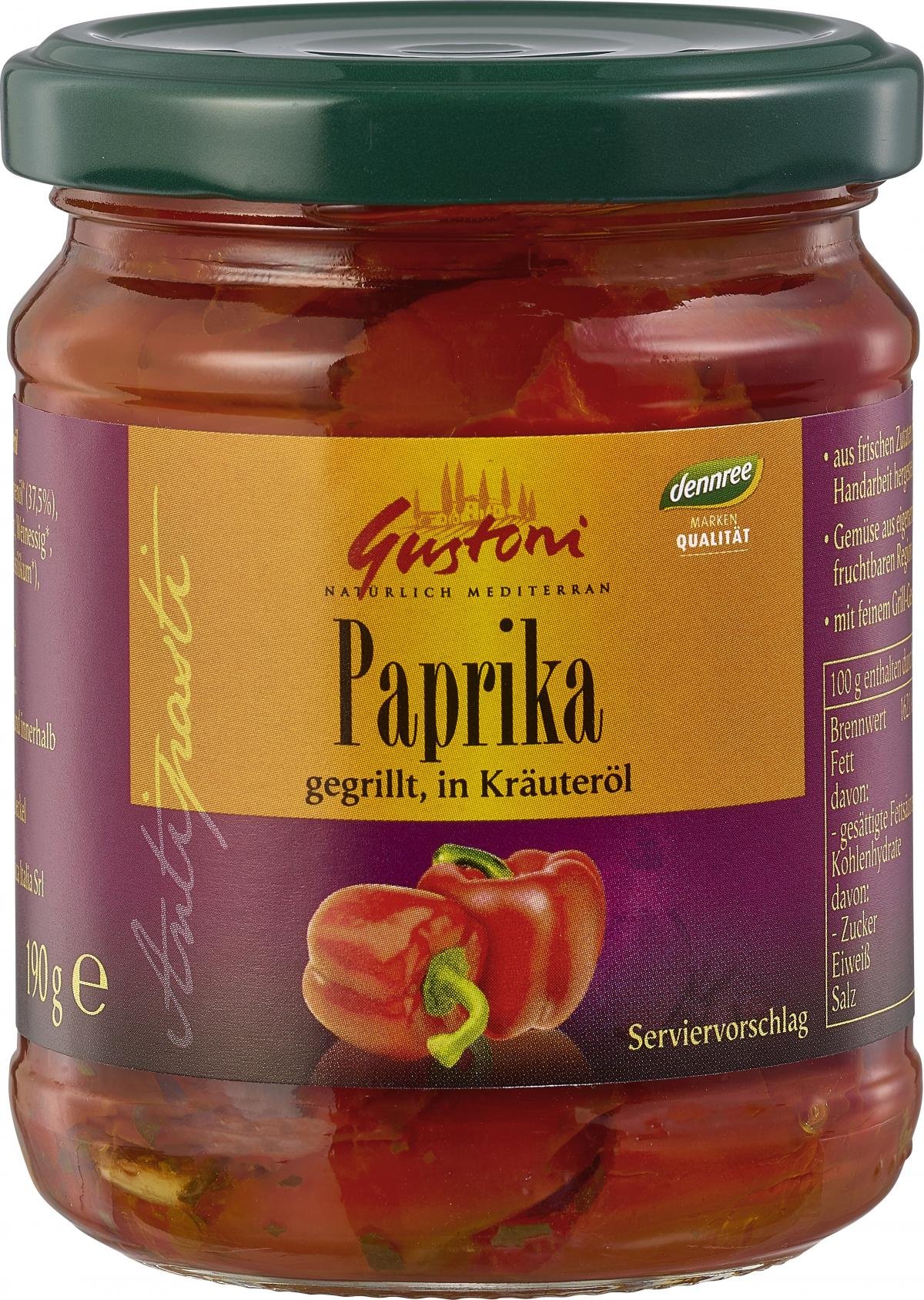 Gustoni gegrillte Paprika, in Kräuteröl, demeter,