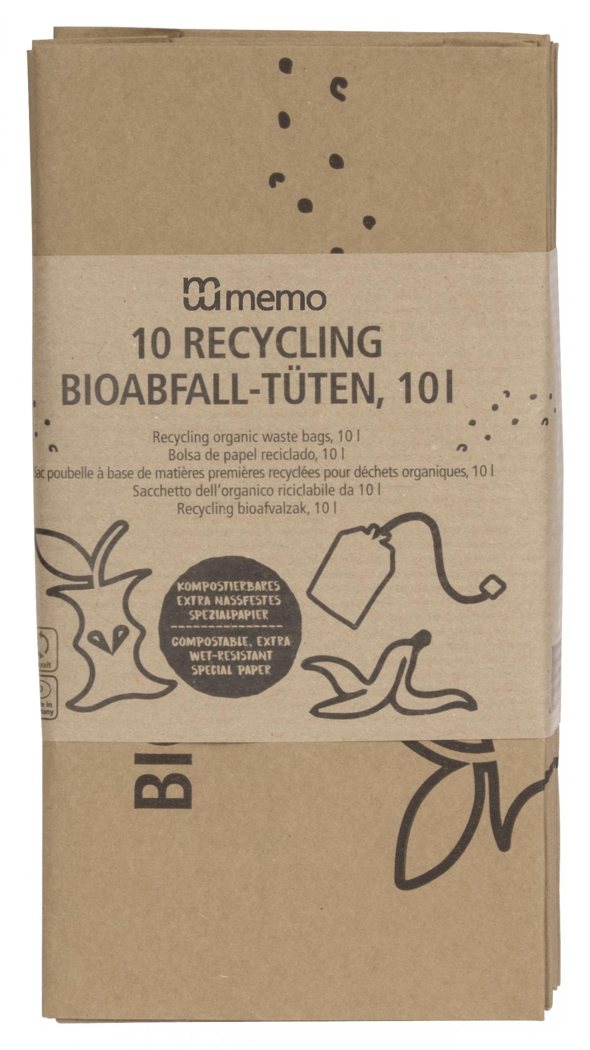 10 memo Bioabfall-Kompostbeutel aus Recyclingpapier 10 l, 23 x 13 x 34 cm