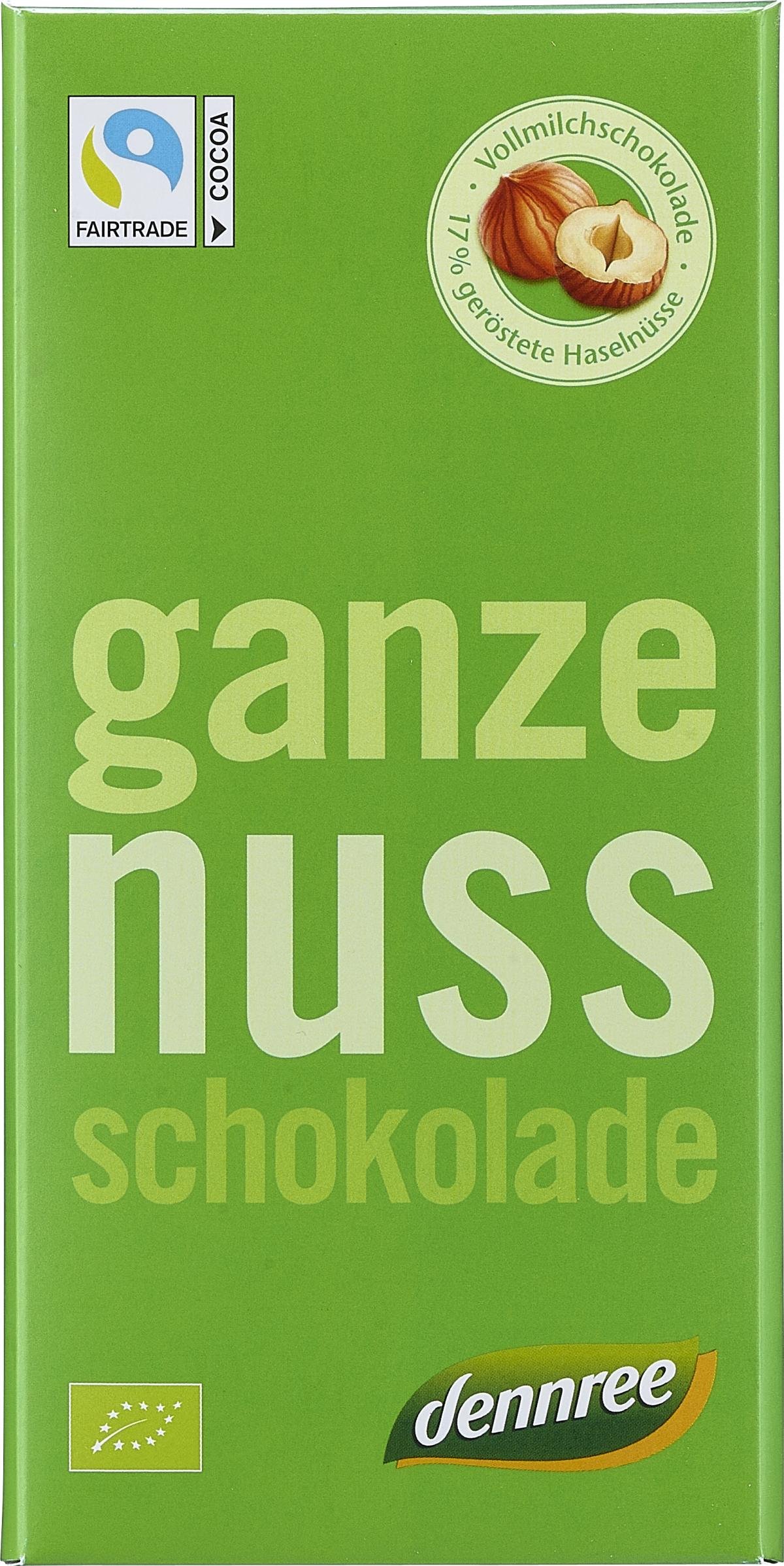 dennree Vollmilchschokolade mit ganzen Haselnüssen
