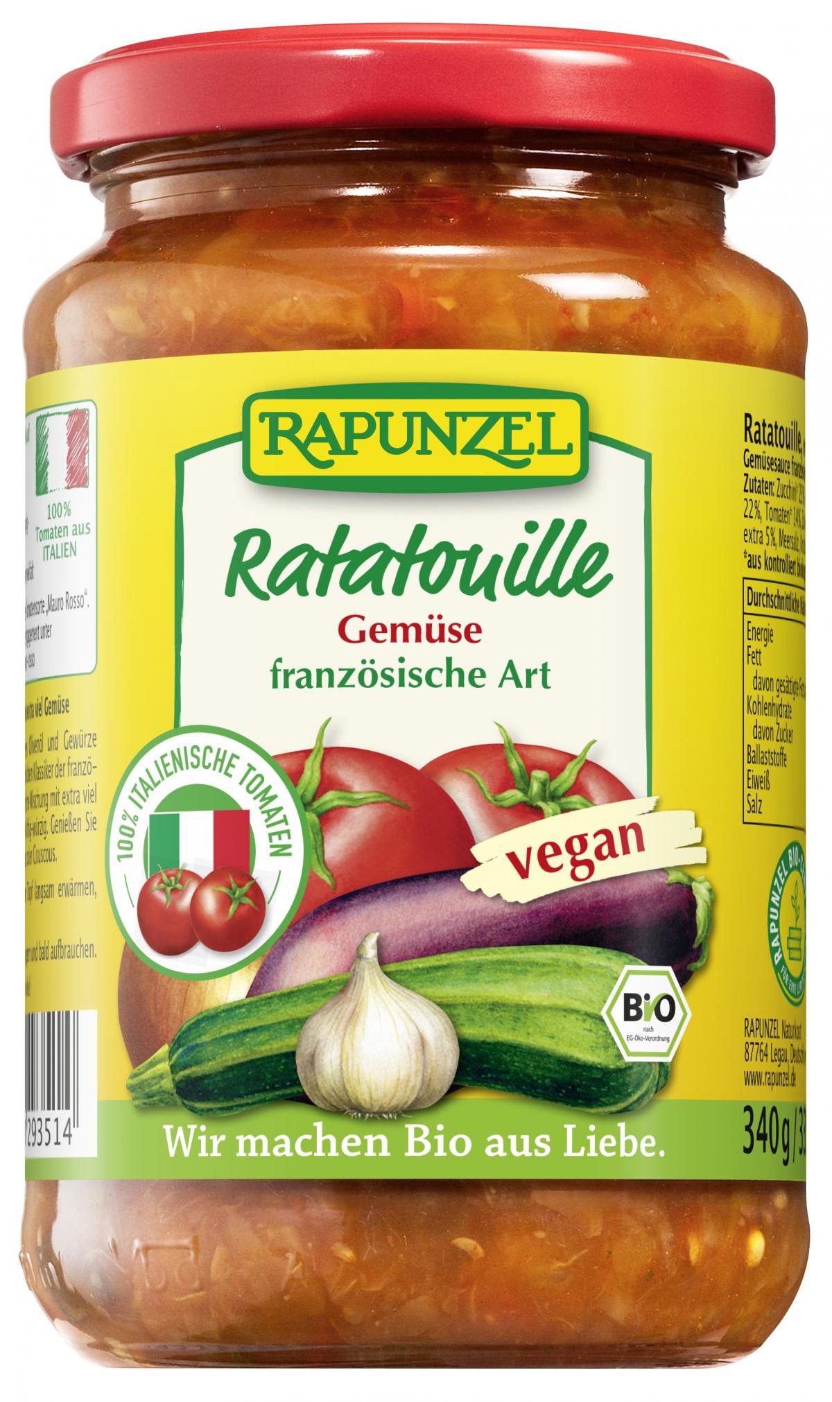 Zucchini*(23,00%), Auberginen*(23,00%), Paprika*(22,00%), Tomaten*(14,00%), Zwiebeln*(11,00%), Olivenöl* nativ extra(5,00%), Meersalz, Knoblauch*