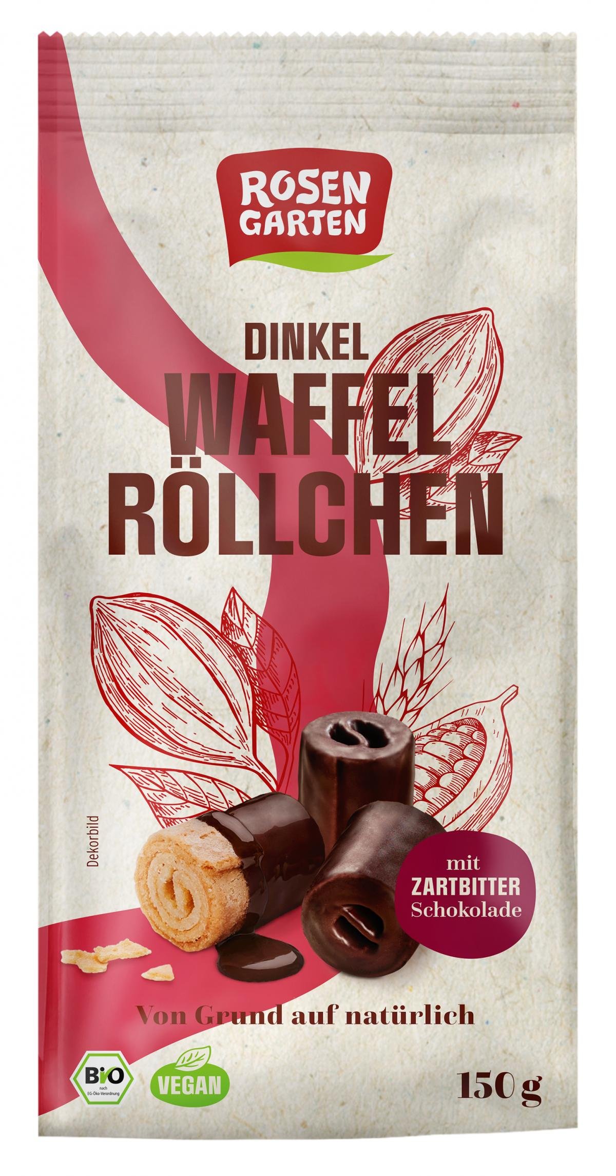 Rosengarten Dinkel-Waffelröllchen Zartbitter, 150